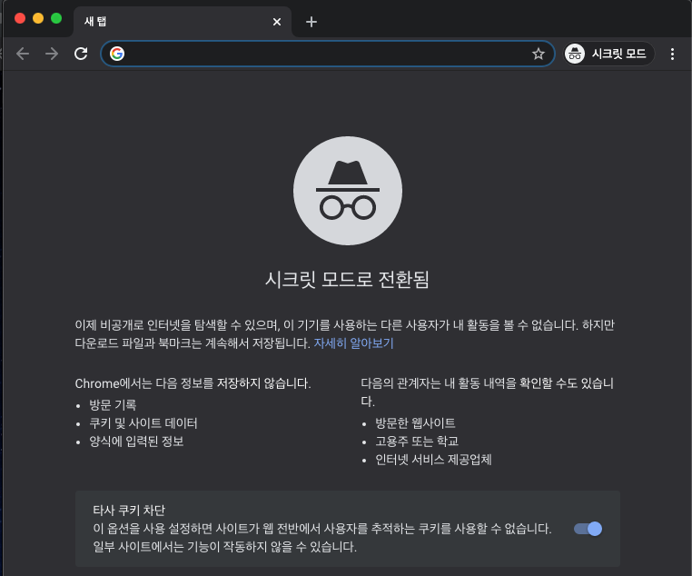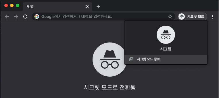 또는 왼쪽 상단의 닫기 버튼을 눌러서 시크릿 모드가 활성화된 브라우저 창을 닫기만 하면 됩니다.