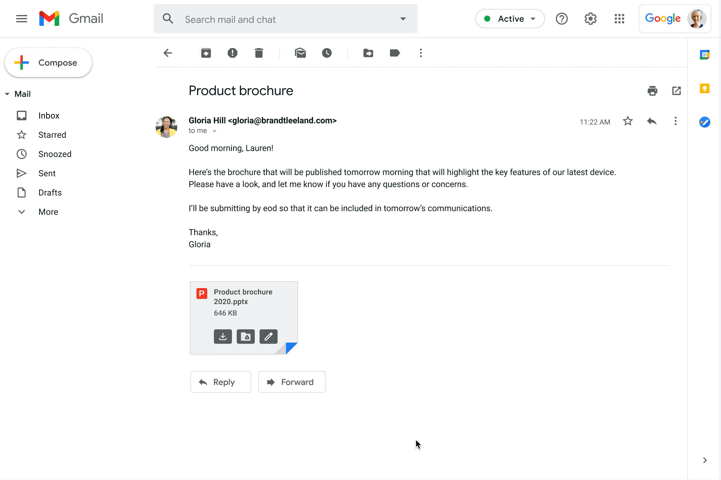 첨부 파일 아이콘의 편집(Edit) 버튼을 클릭하면 바로 편집 모드로 화면이 전환되는데 수정을 마치고 간단히 메뉴에서 회신하기 하면 파일이 전송됩니다. 구글 워크플레이스에서도 MS 오피스 365가 바로 호환 사용이 가능하도록 했는데, 사실상 업무용 문서들의 대부분이 오피스 문서로 작성되고 있음을 감안하면 이용자 입장에서 매우 편리해졌다고 봐야겠습니다.