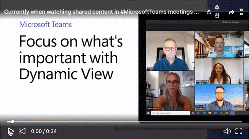마이크로소프트(Microsoft)가 3월에 화상회의 플랫폼 팀즈(Teams)에서 발표자료 공유 시에도 회의 참가자 화면을 좀 더 크게 볼 수 있도록 설계한 다이내믹 뷰(Danamic View) 기능을 지원할 것이라고 합니다.