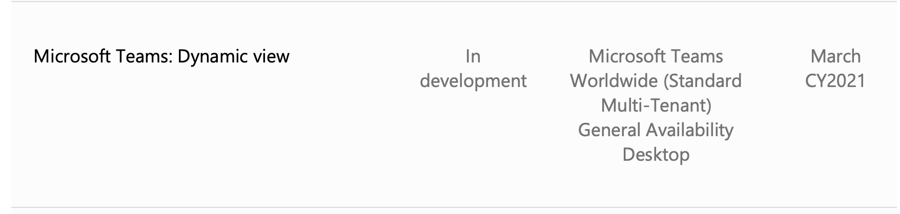 마이크로소프트 365 제품의 로드맵에 따르면 작년 7월 처음 공개한 다이내믹 뷰 기능은 팀즈 이용자들이 오는 3월부터 사용할 수 있다고 합니다.