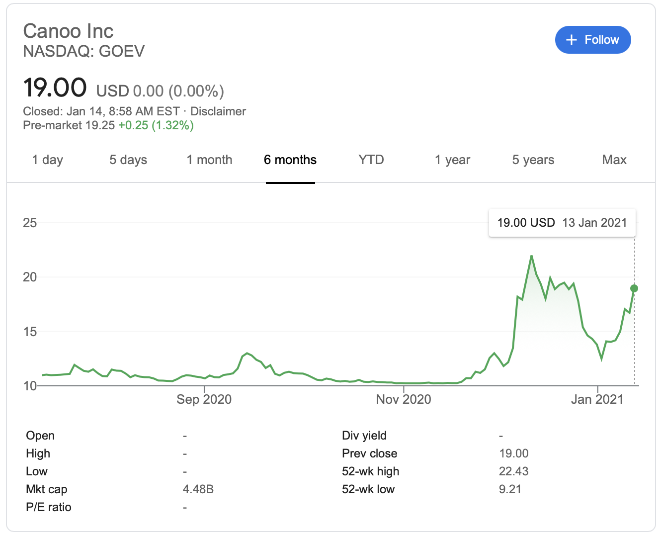 아래는 카누의 나스닥 거래 시세 그래프인데 애플과의 협업 소식으로 주가가 다시 살아나고 있는 모습을 보이고 있습니다. 향후 전기차 시장이 테슬라나 애플 그리고 대형 자동차 메이커들처럼 기술력과 거대 자본력을 갖춘 기업들의 주도로 재편이 될 텐데 카누가 그 틈바구니에서 어떤 행보를 택할지 귀추가 주목이 됩니다.