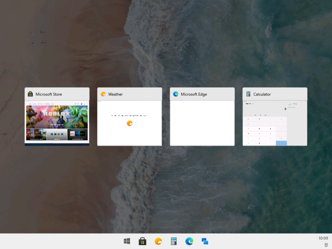작업 전환 : 윈도우 10X는 작업 전환을 위해 Alt + Tab 키 입력과 더불어 작업표시줄의 작업 보기 단추도 지원