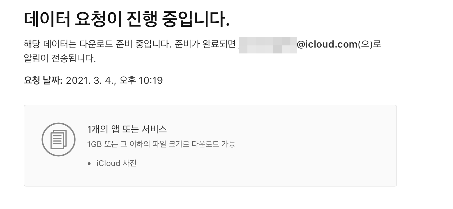 Step 1. 애플 데이터 및 개인정보 보고 사이트로 접속 (애플 ID로 로그인하면 아래 화면이 나옴)