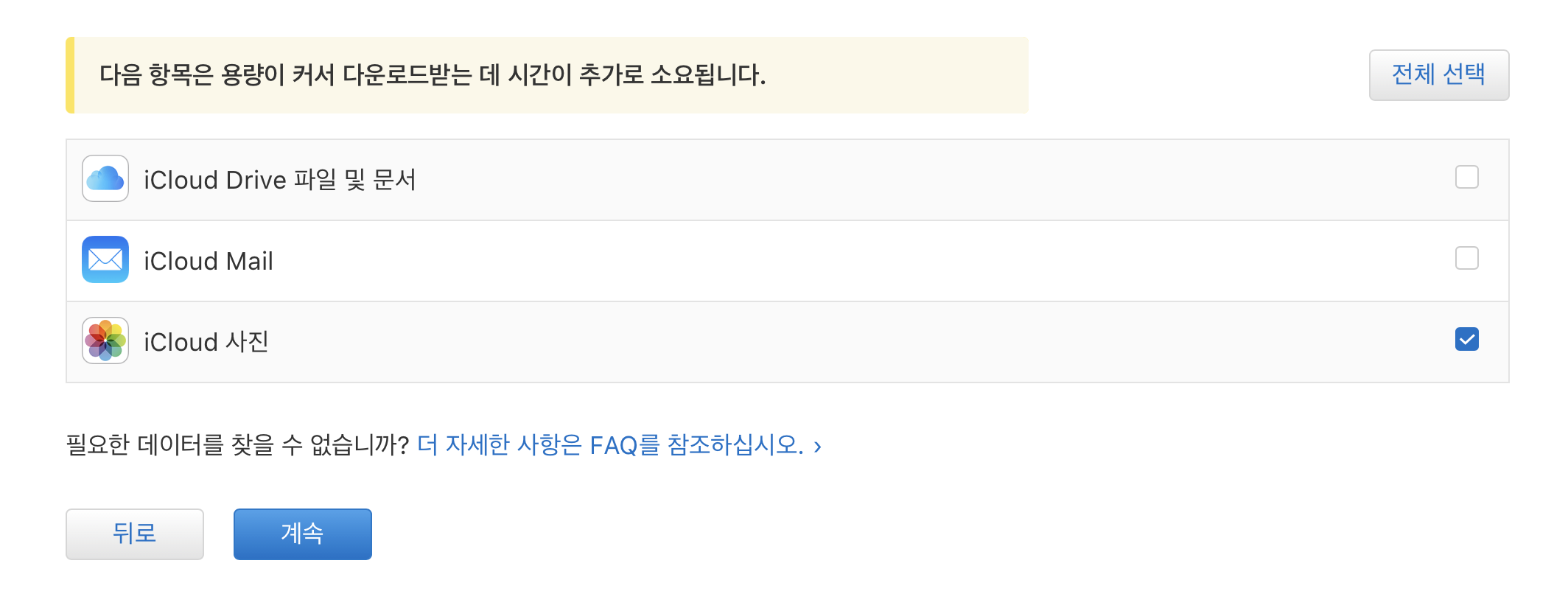 Step 2. 데이터 보관할 항목 선택에서 iCloud 사진 선택하기