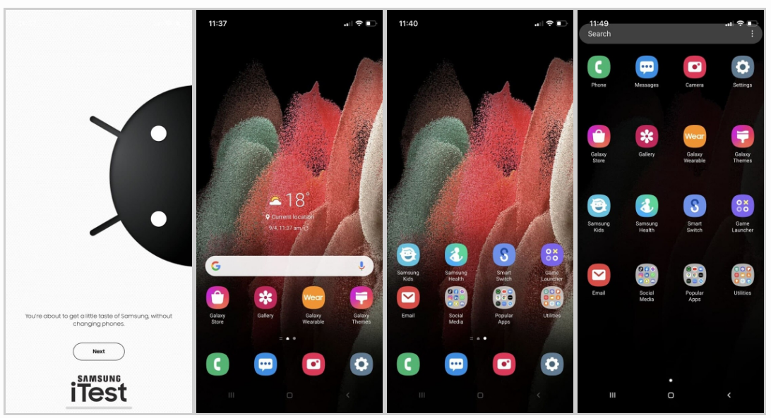 몇 가지 앱들과 설정 옵션을 맛볼 수 있는데 삼성전자에서 제공하는 One UI 기반의 인터페이스들을 체험해볼 수 있습니다.