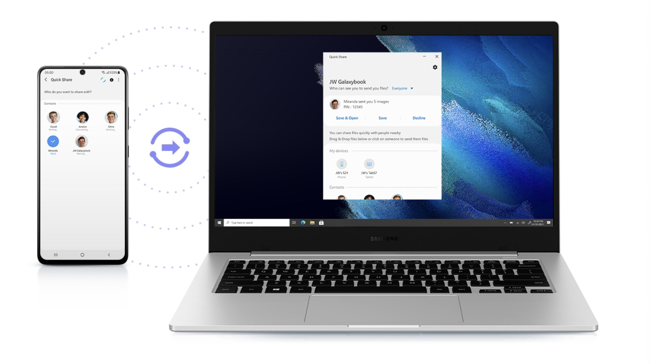 예를 들어 갤럭시 스마트폰과 앱 미러링을 통해 문자 메시지를 보내거나 전화 통화하는 게 가능하고 갤럭시 Tab S7 시리즈 모델을 연결해 듀얼 모니터를 구성할 수도 있습니다. 그리고 쉬운 블루투스 연결로 갤럭시 버즈 이어폰과의 연결도 부드럽게 이뤄진다고 합니다.