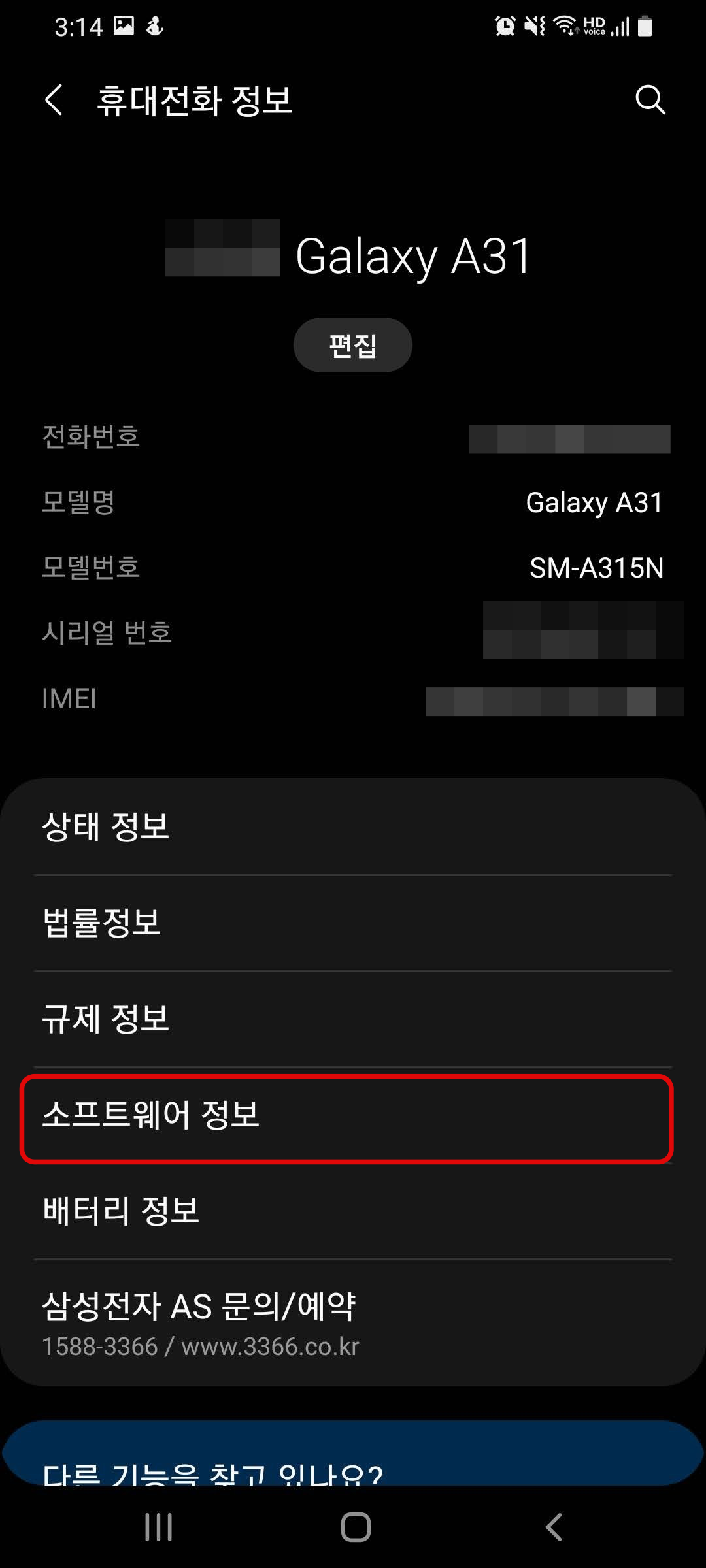 3. '휴대전화 정보'로 들어가서 '소프트웨어 정보' 메뉴를 선택
