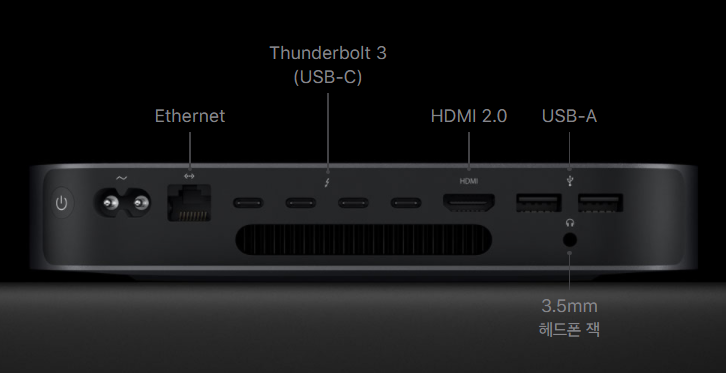 아래 사진은 인텔 맥미니 연결 포트 이미지 인데 썬더볼트 포트가 M1 맥미니보다 2개가 더 많습니다.