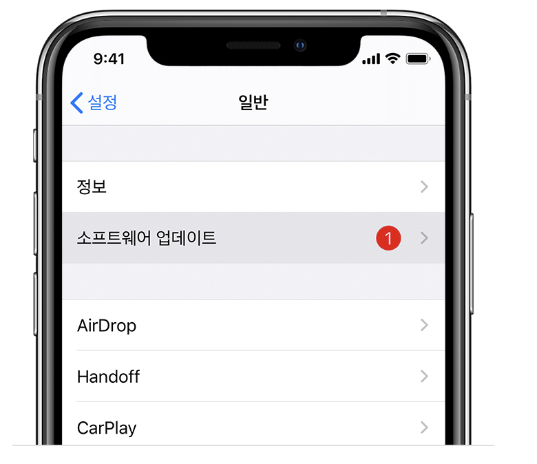 1. 설정 (태엽모앙 아이콘) > 일반 > 소프트웨어 업데이트로 이동합니다.